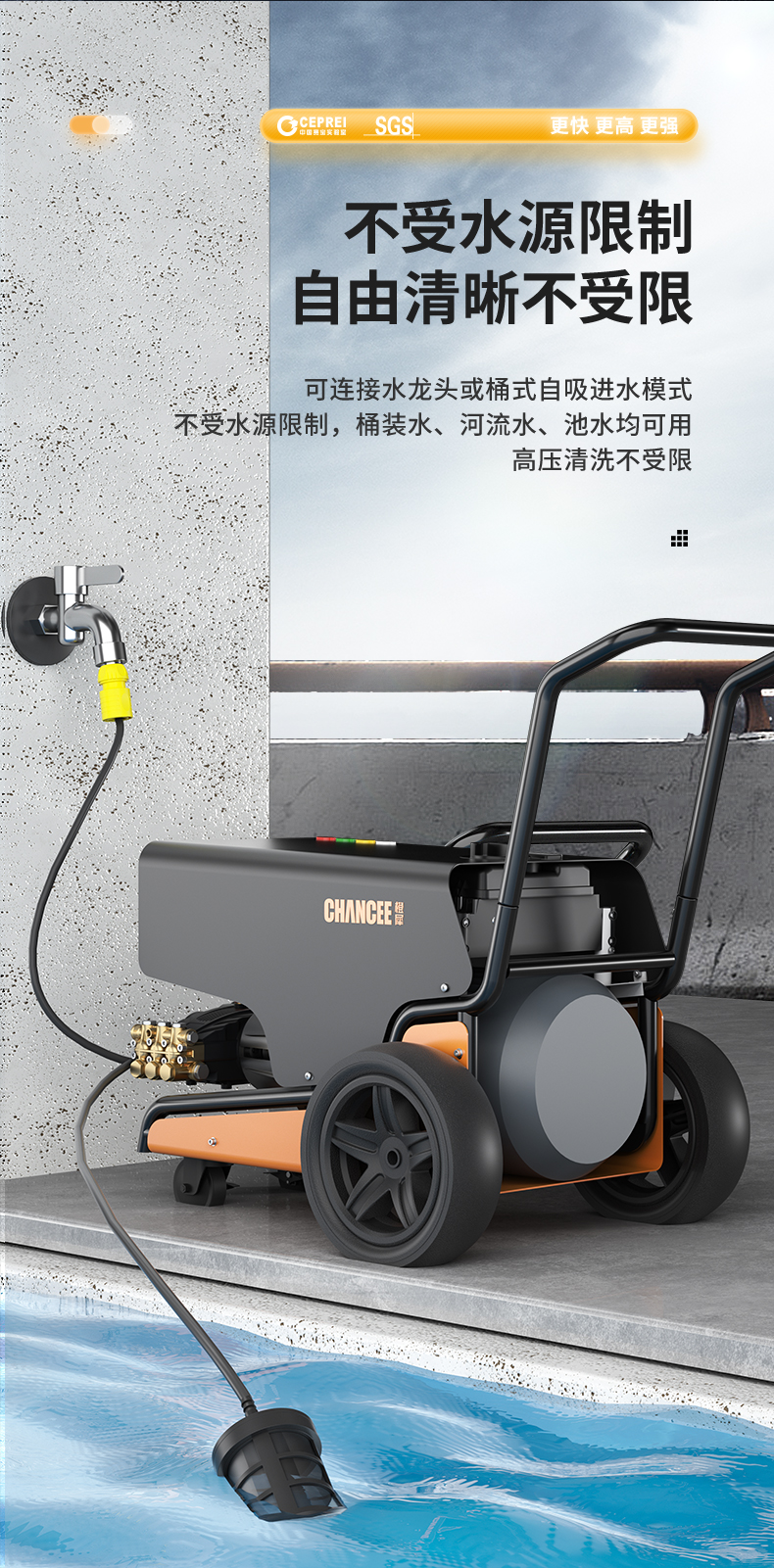 橙犀高壓清洗機 YG3515:強勁動力24小時可聯(lián)系工作,高壓不停機,還擁有溜達強勁優(yōu)勢,干凈快速清潔,工業(yè)級純銅,增壓自吸泵快速供水。