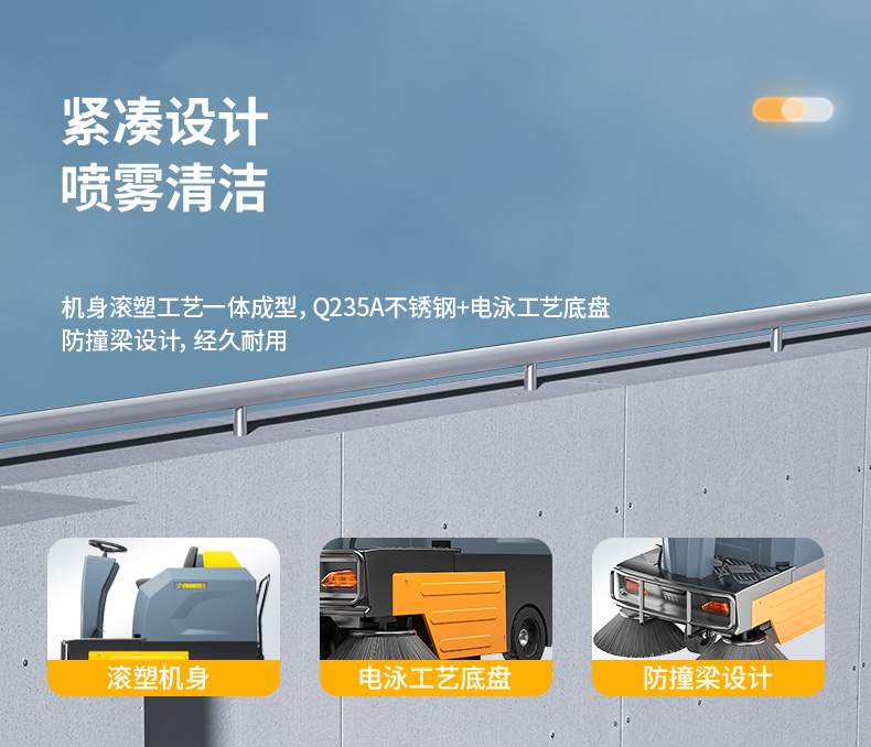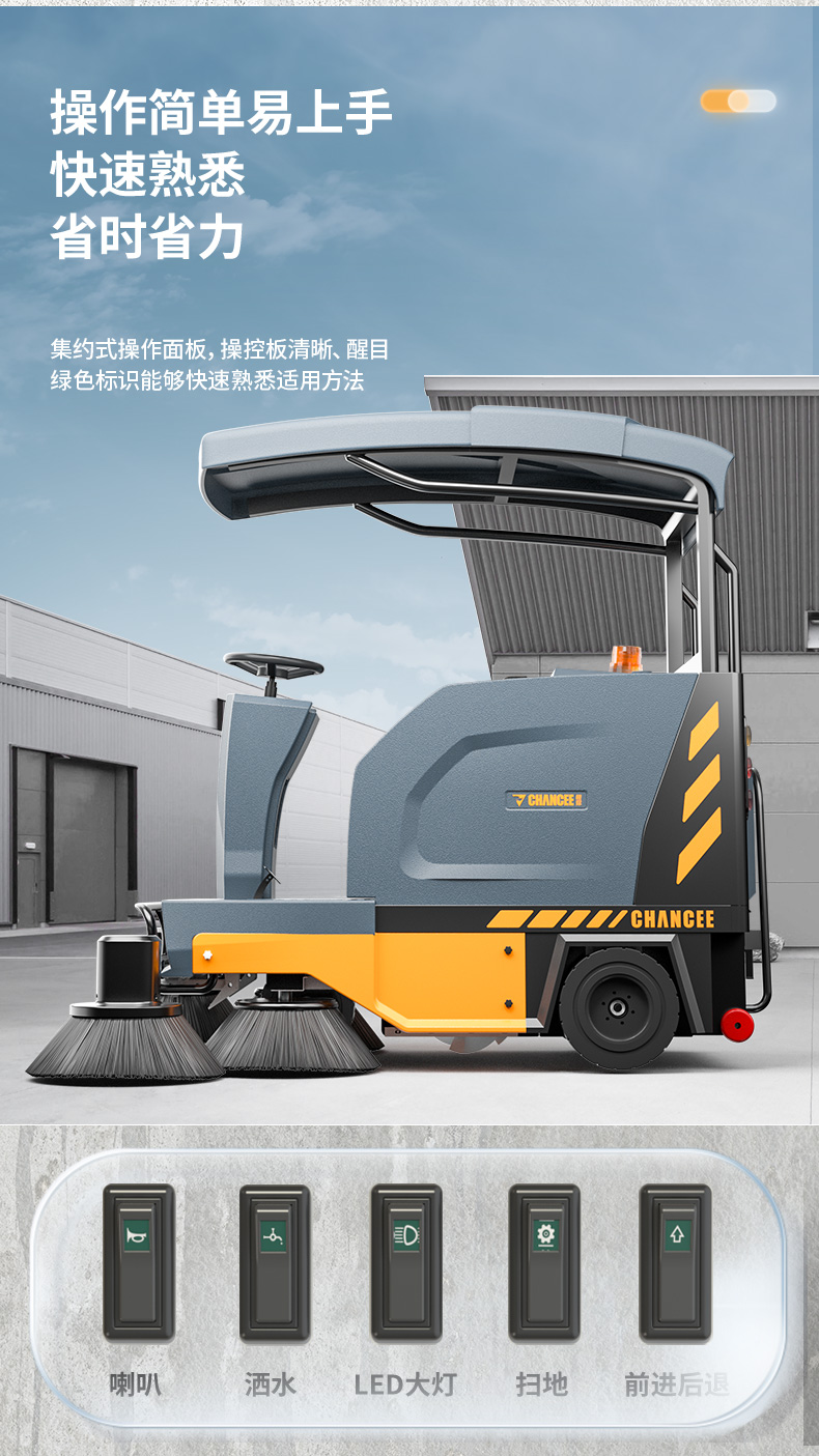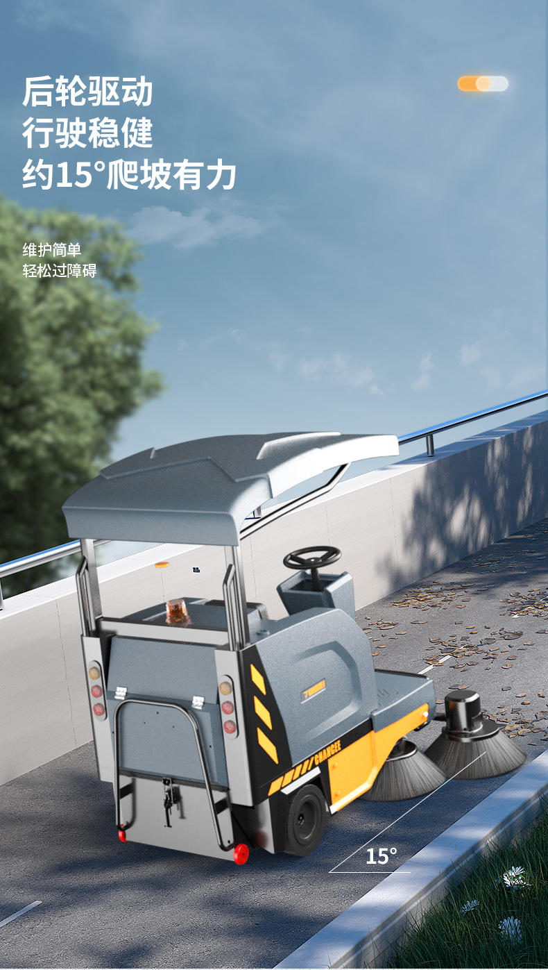 橙犀U190P 駕駛式掃地機:半封閉駕駛式倉,可以遮陽,清潔體驗更佳。高強度氮氣減震系統(tǒng),保護機身安全系數(shù)高,駕駛平穩(wěn)不顛簸,690mm打復讀主刷,首創(chuàng)六面體鏈接,使用壽命提升18%
