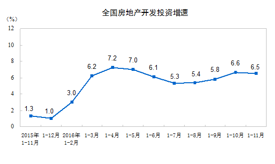 2016年1-11月份全國(guó)房地產(chǎn)開(kāi)發(fā)投資和銷(xiāo)售情況
