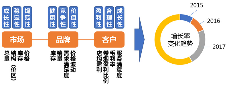 建立系統(tǒng)化的卷煙市場監(jiān)測分析體系,從市場總量、品牌和客戶等三個維度全面分析全國范圍或區(qū)域卷煙市場總體表現(xiàn)及變化趨勢,并在監(jiān)測數(shù)據(jù)積累的基礎上,進行關于零售價格變化與市場表現(xiàn)的關系研究、社會存銷比預警研究等深度挖掘。