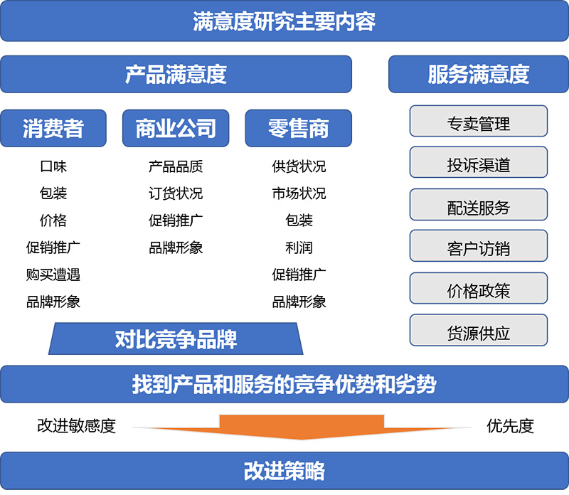 煙草的滿意度研究主要包括產(chǎn)品滿意度和服務滿意度兩個方面。產(chǎn)品滿意度考評主要來自于流通的各個環(huán)節(jié)對卷煙品牌的滿意狀況,而服務滿意度則主要是零售終端對煙草公司服務狀況的滿意程度。