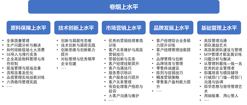 為深入學習黨的十九大精神,貫徹落實中央頒布實施的《2010-2020年干部教育培訓改革綱要》,進一步解放思想,轉(zhuǎn)變觀念,提高煙草系統(tǒng)領導干部的綜合素質(zhì)和工作能力,華夏經(jīng)緯依托強大的優(yōu)質(zhì)師資團隊,推出煙草系統(tǒng)系列培訓課程。