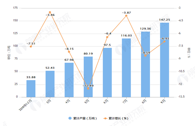 據國家統計局市場調查統計數據顯示,2019年8月江西省原鹽產量為13.33萬噸,同比下降35.98%,2019年9月江西省原鹽產量為17.88萬噸,同比增長7.13%。2019年1-9月江西省原鹽產量147.25萬噸,同比下降6.93%。