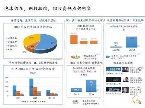 最近大家都在說的互聯網寒冬,實際上與目前市場的估值過高不無關系。從上面左邊兩個圖我們可以看到,確實在VC眼中,現在的項目太貴,在創業者看來,又找不到投資。賣者不愿意降價,買者不愿意付費,所以市場就會變得冷清。從投資案例數看,2015年是非常好的一年,但是從今年前半年的數據看,如果后半年跟前半年一樣的話,今年整體的投資案例數大概只能達到2015年的水平。從這個角度看起來,大家可能會有一些擔心,但是實際上不是這樣。雖然數據告訴我們整個大環境可能有點問題,像P2P、O2O可能開始有點讓人擔心,但是有不少的領域還是非常火。例如人工智能、AR、VR、教育市場等這幾個市場都非?;穑及l展得非常好。這些重點成長的領域或者所謂的風口,其實投資量是在增加的。創新工場投資的幾個案子,包括馭勢科技吳甘沙,包括第四范式,這幾個公司都是在所謂的泡沫,所謂寒冬的時候用非常好的估值融到下一輪。雖然他們沒有足夠大的收入,但當這些公司有很棒的創始人,找到了一個好的風口時,他們其實是不需要擔心投資的,而相應的,VC也不需要再去看過去的什么紅海了,而是把時間放在看這些新的崛起的領域有什么機會。貳 創新工場的投資策略下面這張圖內容非常豐富:
