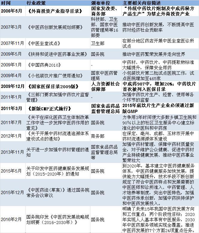 圖表: 2006-2016年國內中藥(中藥飲片)行業主要政策