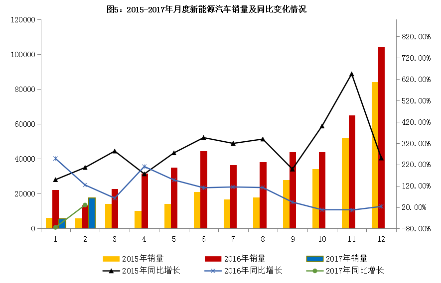 2月,新能源汽車產銷均完成1.8萬輛,同比分別增長15.5%和30.3%。其中純電動汽車產銷分別完成1.5萬輛和1.4萬輛,同比分別增長32.3%和49.5%;插電式混合動力汽車產銷分別完成0.26萬輛和0.37萬輛,同比分別下降33.5%和12.4%。