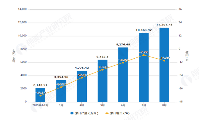 2019年1-8月重慶市手機產量及增長情況市場調查